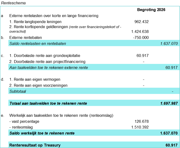 Dit percentage wordt uniform toegepast op alle investeringen en vormt daarmee de basis voor de rentetoerekening aan de verschillende programma’s binnen de begroting.
